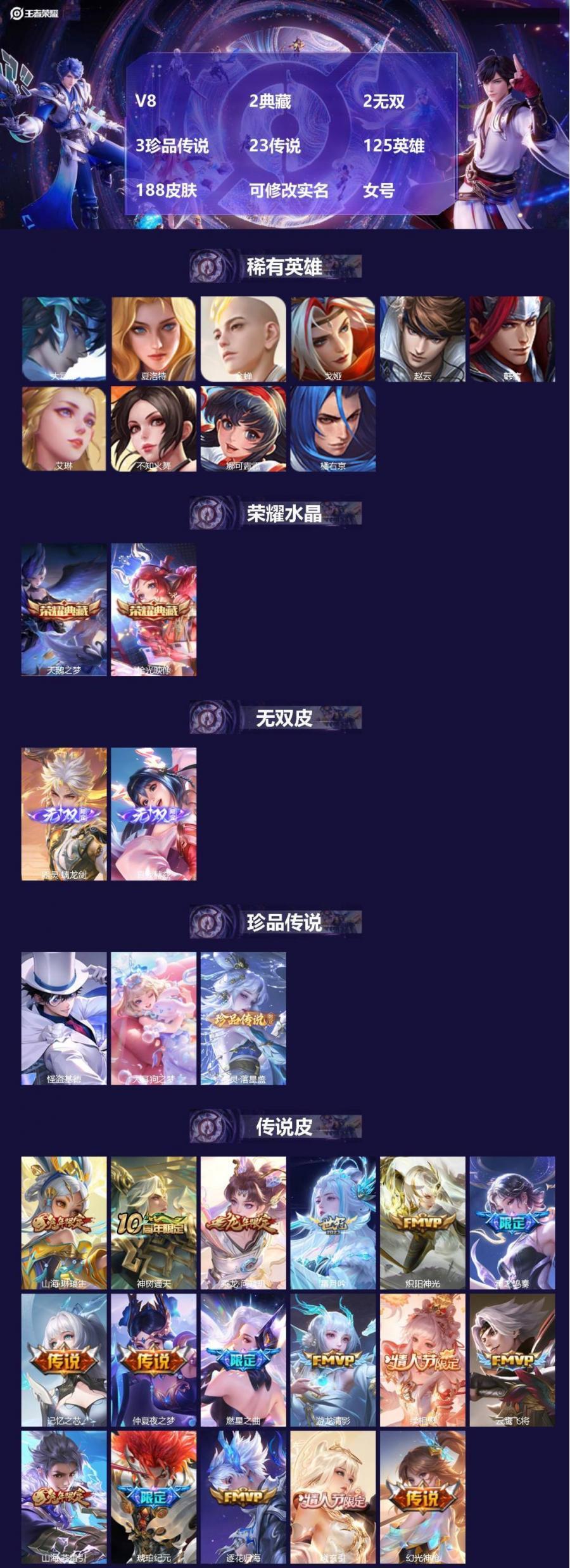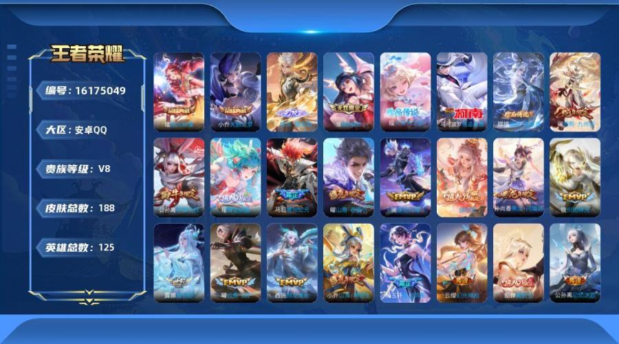 王者荣耀V8账号 安卓Q区 188皮肤 125英雄 便宜出售
